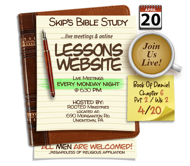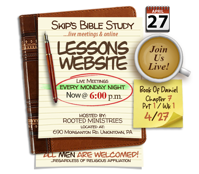 Skip's Bible Study is about discipling MEN of God and to put the scriptural command of 2 Timothy 2:15 into practice with it's weekly Monday Night meetings now being held at Rooted Ministries located in the Uniontown Mall, Uniontown, PA
